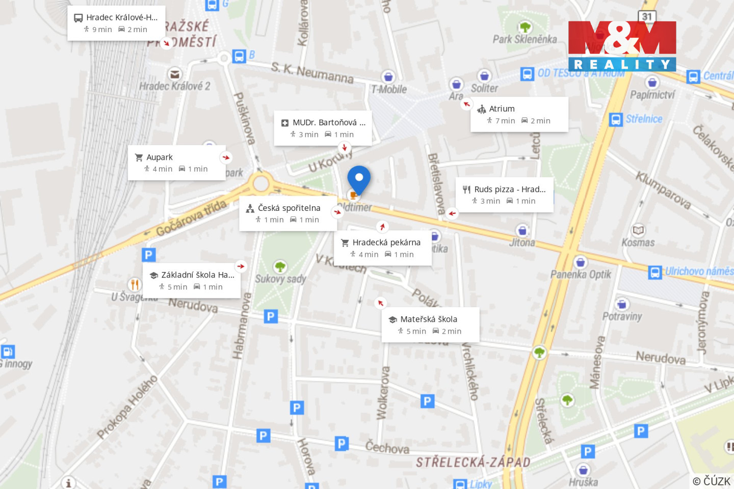 V bezprostředním pěším dosahu najdete kompletní občanskou vybavenost – lékaře, mateřskou i základní školu, konkrétně například Základní škola Habrmanova, dále kavárny, obchody i zastávky MHD a vlakové nádraží.