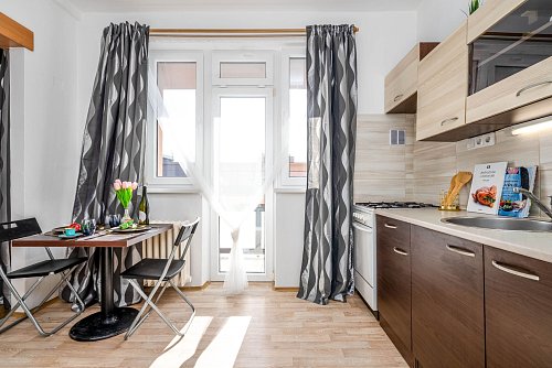 Byt je orientován na jižní světovou stranu, díky čemuž je krásně prosvětlený a působí velmi vzdušným dojmem. Z obou lodžií se otevírá jedinečný výhled na obchodní centrum Aupark Hradec Králové i na historické centrum města s dominantou, kterou je Bílá věž. Bytová jednotka je v pěkném stavu a je připravena ihned k bydlení. Je zde zděné jádro s vanou, samostatné WC, vstupní chodba, prostorná kuchyně se vstupem na lodžii, která je dále propojená do prostorného pokoje také se vstupem na samostatnou lodžii.