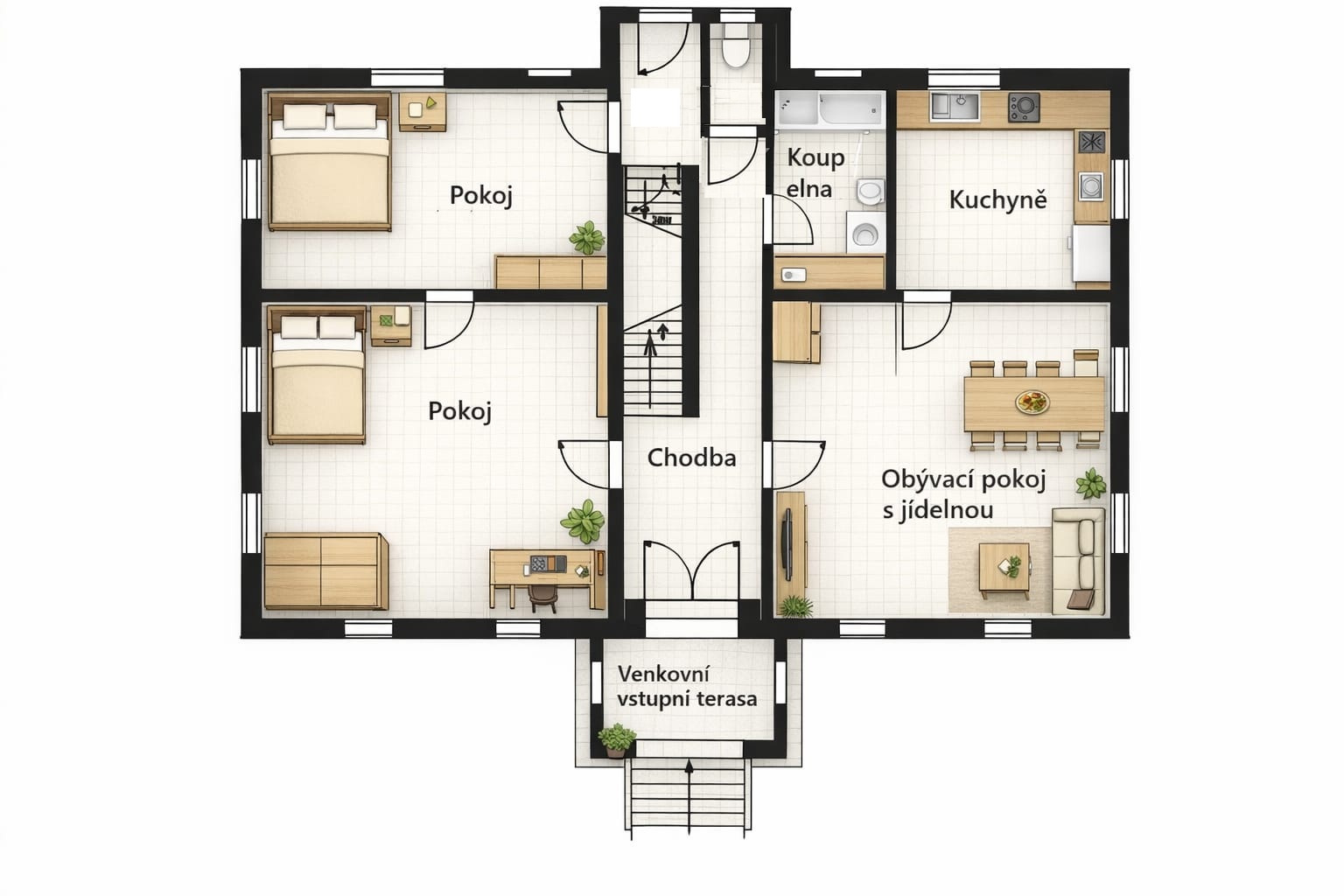 Možnost vybudování 2 bytových jednotek, případně apartmánů na pronájem.